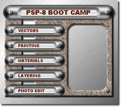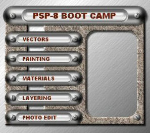 - First let's title our interface. I have chosen "PSP8 Boot Camp". Below are the steps I take when I place text on my drawing. (Make sure your "Merged" layer is selected. This will cause the new vector layer, that PSP creates, to be placed on top of the interface.)