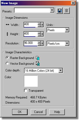 HINT: Step 1. Create a blank image as per our desired size and resolution. - Select the File Menu/New (Ctrl+n).