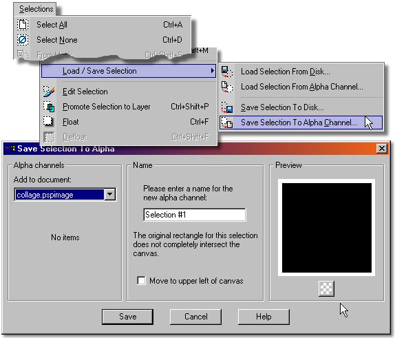 Step 4. Using the selection frame option place a frame around the main image (save as alpha channel).
