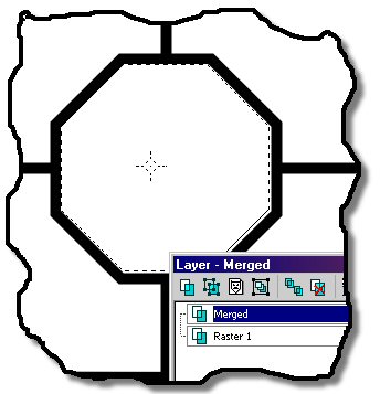 Step 5. Using the magic wand build a selection of the seam/frame and create a new raster layer for our seam/frame for later use and hide it.