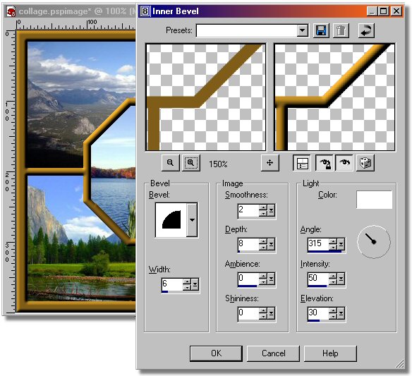 Step 12. Finish our frame using the saved alpha channel, fill with Flood Fill tool and give it a 3D look with the Inner Bevel command.